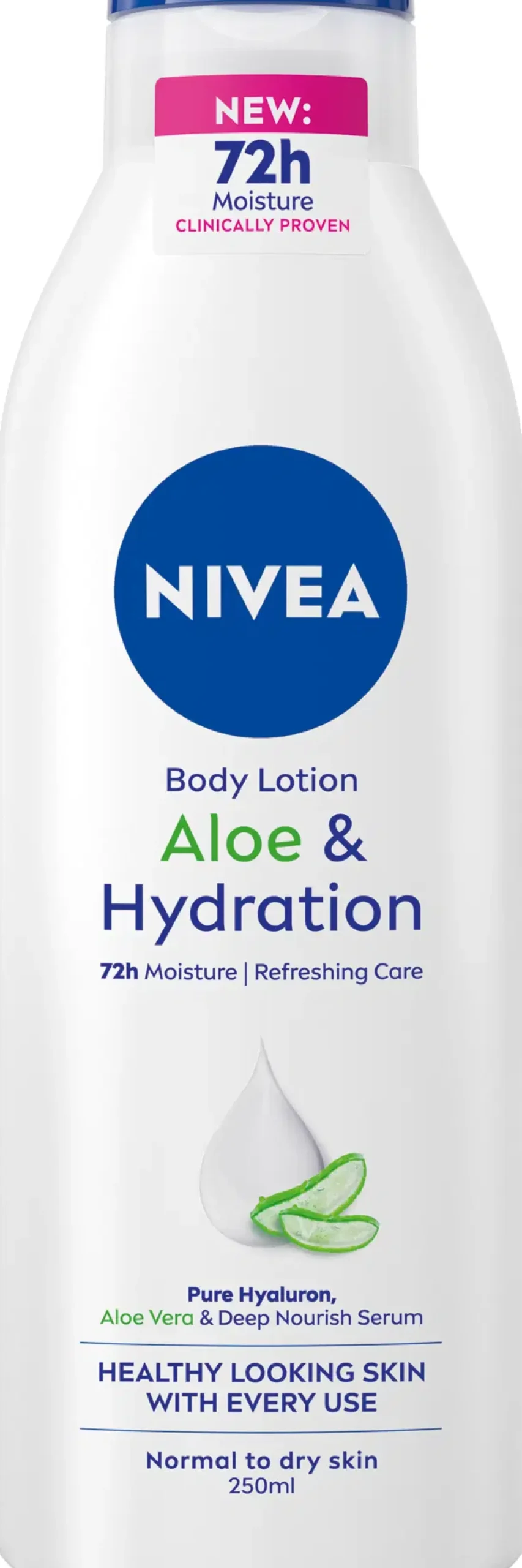 NIVEA Aloe & Hydration Body Lotion -vartaloemulsio tekee ihosta terveen näköisen ja syväkosteuttaa sitä 72 tuntia. Erittäin kevyt ja virkistävä koostumus, tekee ihosta huomattavan pehmeän ja sileän.