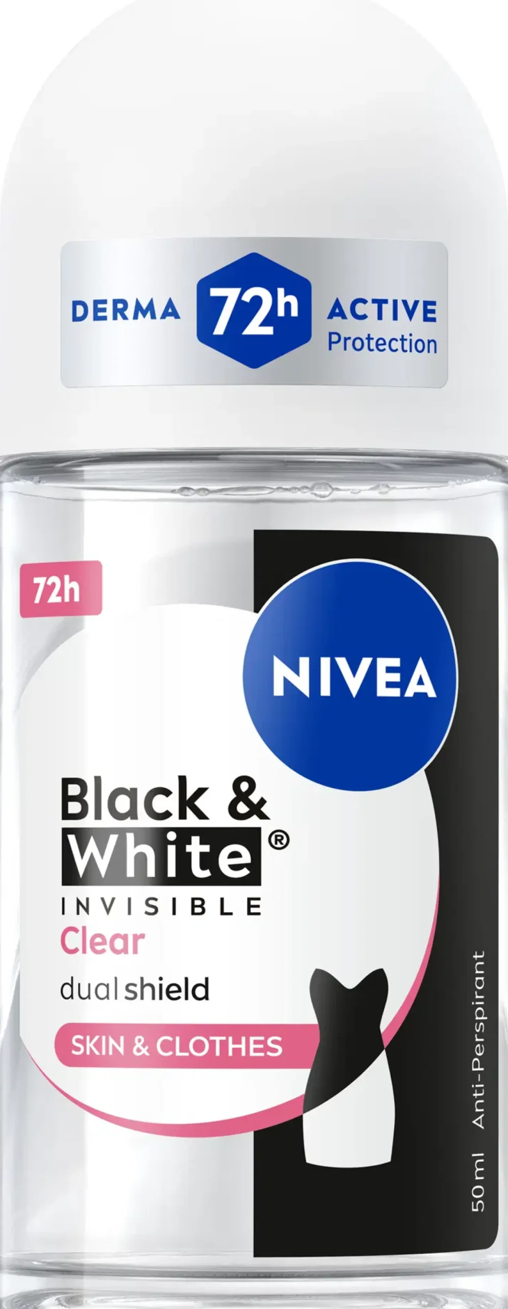 NIVEA Black & White Invisible Original Deo Roll-on -antiperspirantti antaa tehokkaan ja luotettavan 72 tunnin antiperspiranttisuoja, joka hoitaa ihoa. Suojaa mustia vaatteita valkoisilta jäljiltä ja ehkäisee keltaisten tahrojen syntymistä valkoisiin vaatteisiin. Hellävarainen, hoitava koostumus. Iho tuntuu puhtaalta ja raikkaalta. Miellyttävä, raikas tuoksu. Ei sisällä etyylialkoholia. Dermatologisesti testattu. Kierrätettävä pakkaus.