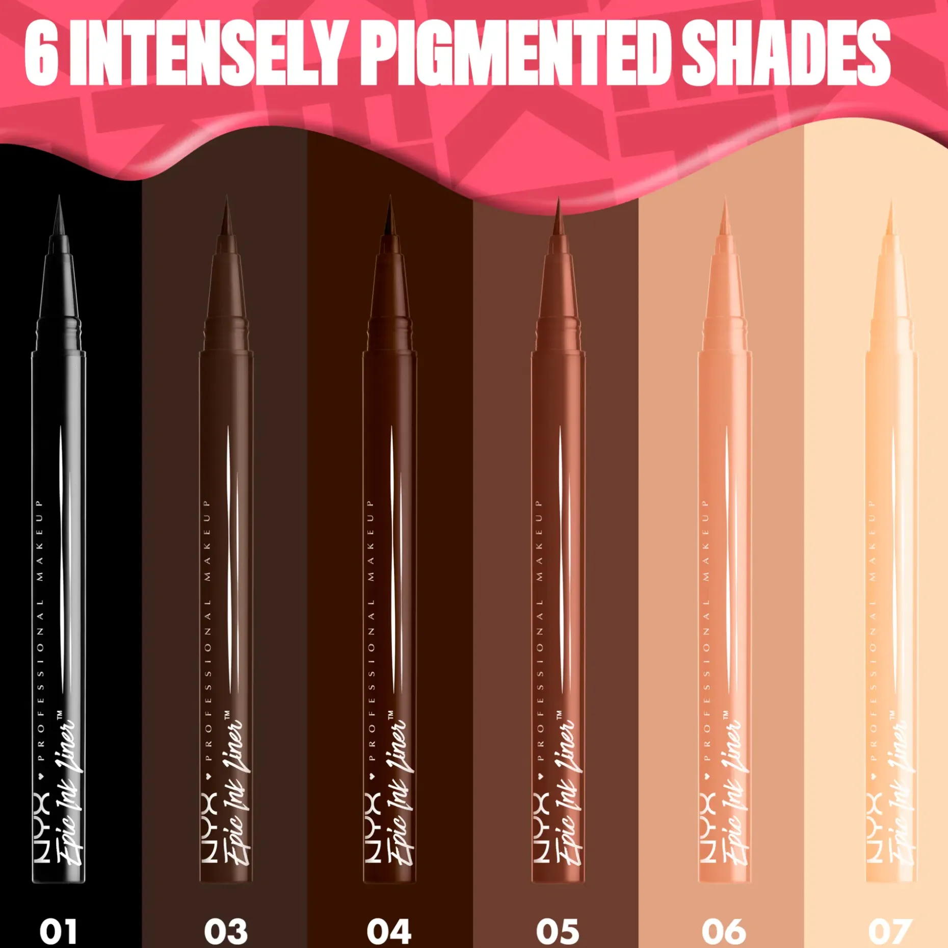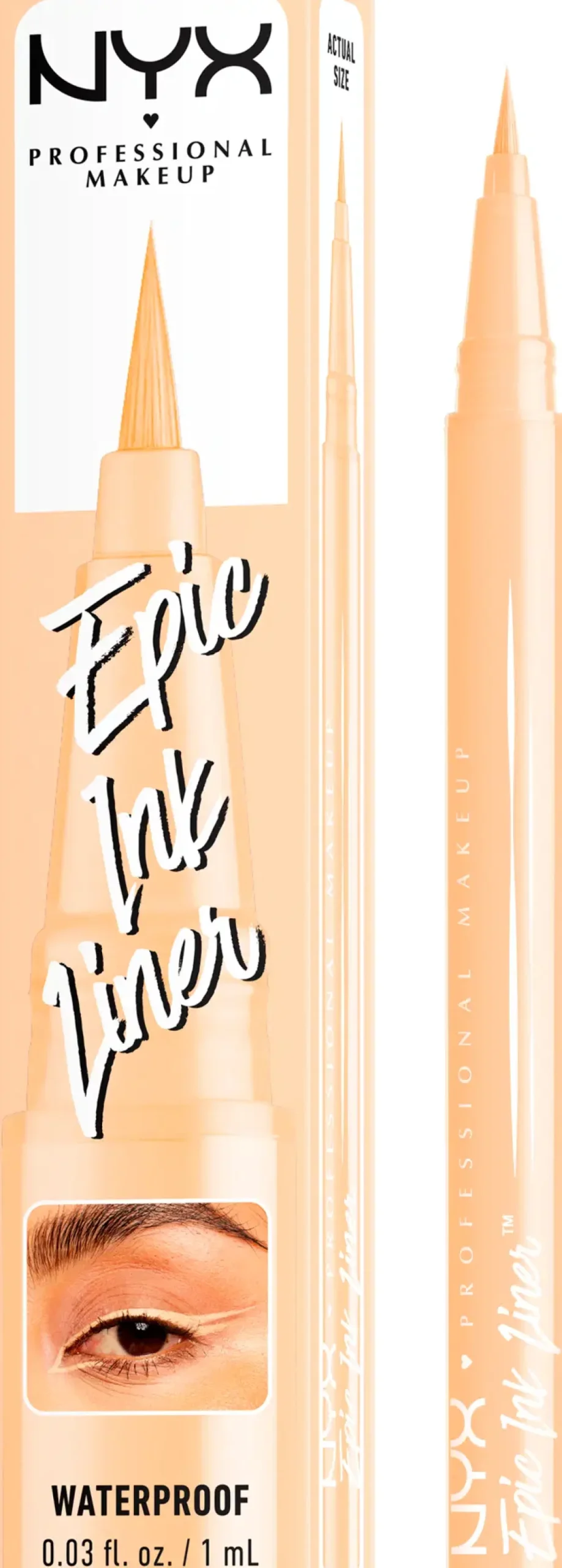 NYX Professional Makeup nestemäinen, vedenkestävä silmänrajauskynä sivellinkärjellä tekee erittäin tarkkojen rajausten tekemisestä todella helppoa. Vain yhdellä vedolla teet vaivattomasti runsaspigmenttisen ja pitkäkestoisen rajauksen.