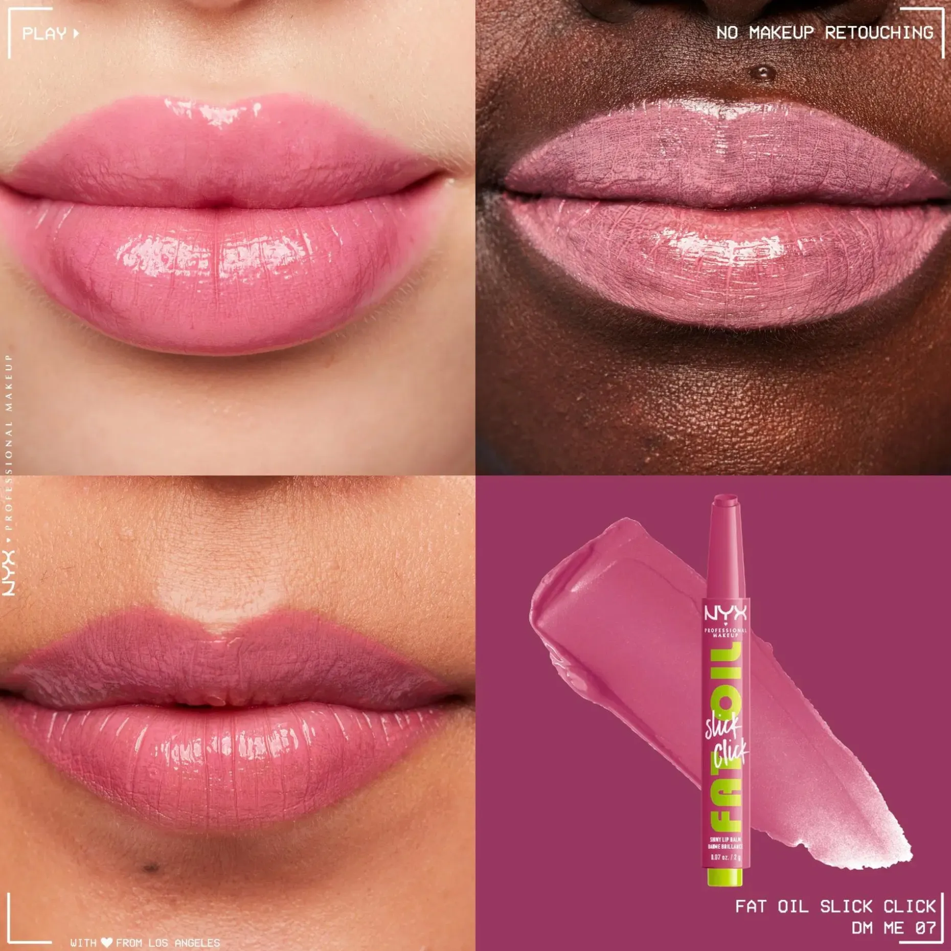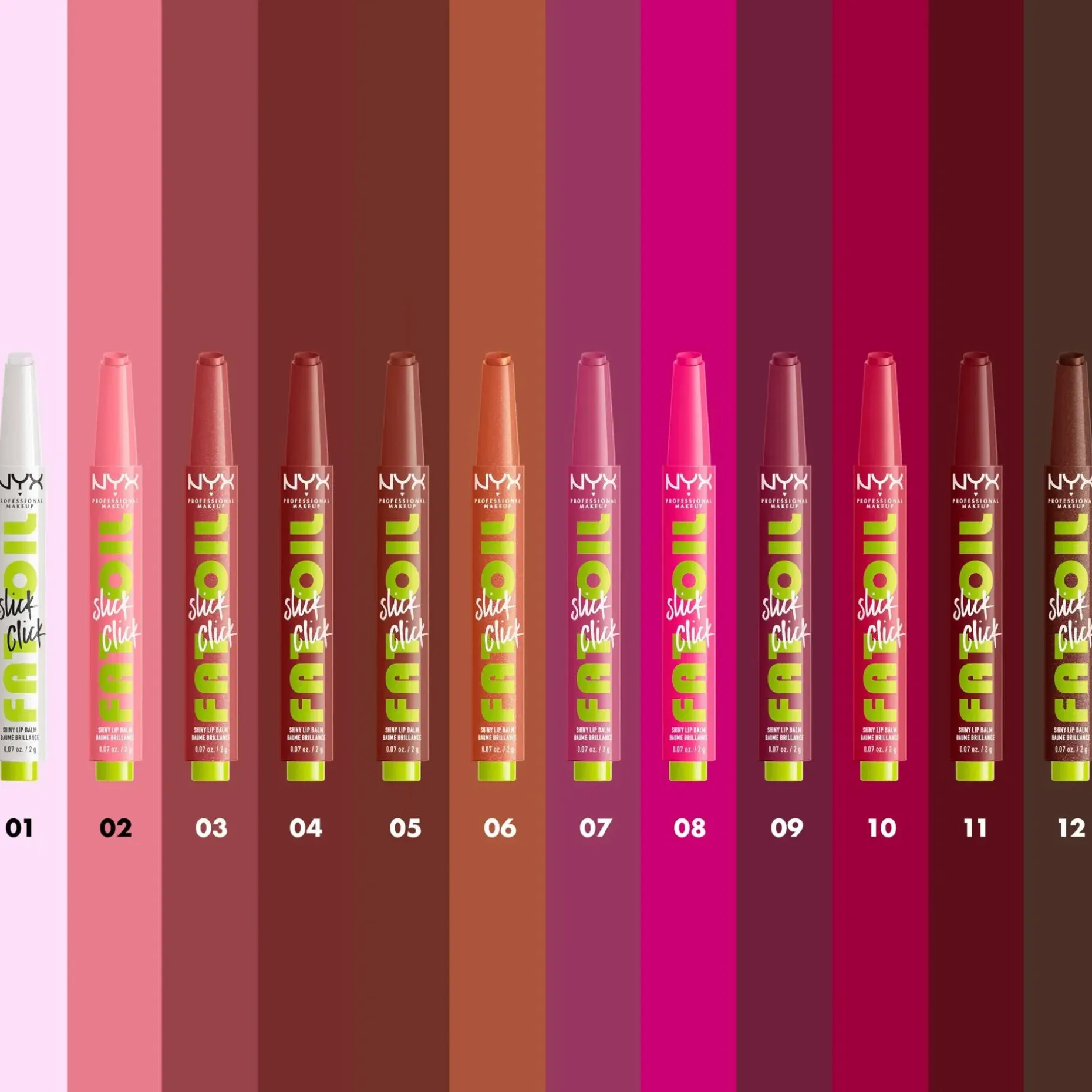 Pehmeät huulet vain yhdellä klikkauksella. NYX Professional Makeup Fat Oil Slick Stick sävyttävä huulivoide antaa juuri oikean määrän tuotetta yhdellä klikkauksella. Vegaaninen avokado-, lakka- ja vadelmaöljyä sisältävä koostumus* hoitaa huuliasi tehokkaasti.