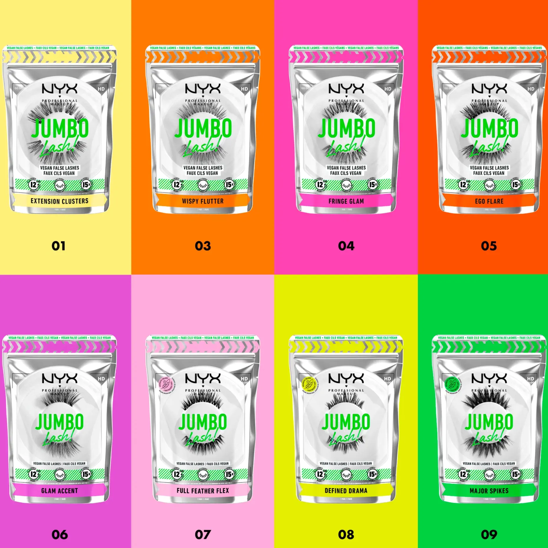 NYX Professional Makeup esittelee uuden nopean ja helpon irtoripsiteknologian: Jumbo Lash vegaaniset irtoripset, joita käytetään yhdessä erikseen myytävällä Jumbo 2-in-1 Liner and Lash Adhesive -silmänrajauskynän kanssa. Jumbotuuheutta, jumbopituutta ja jumboefekti, joka kestää jopa 12 tuntia!