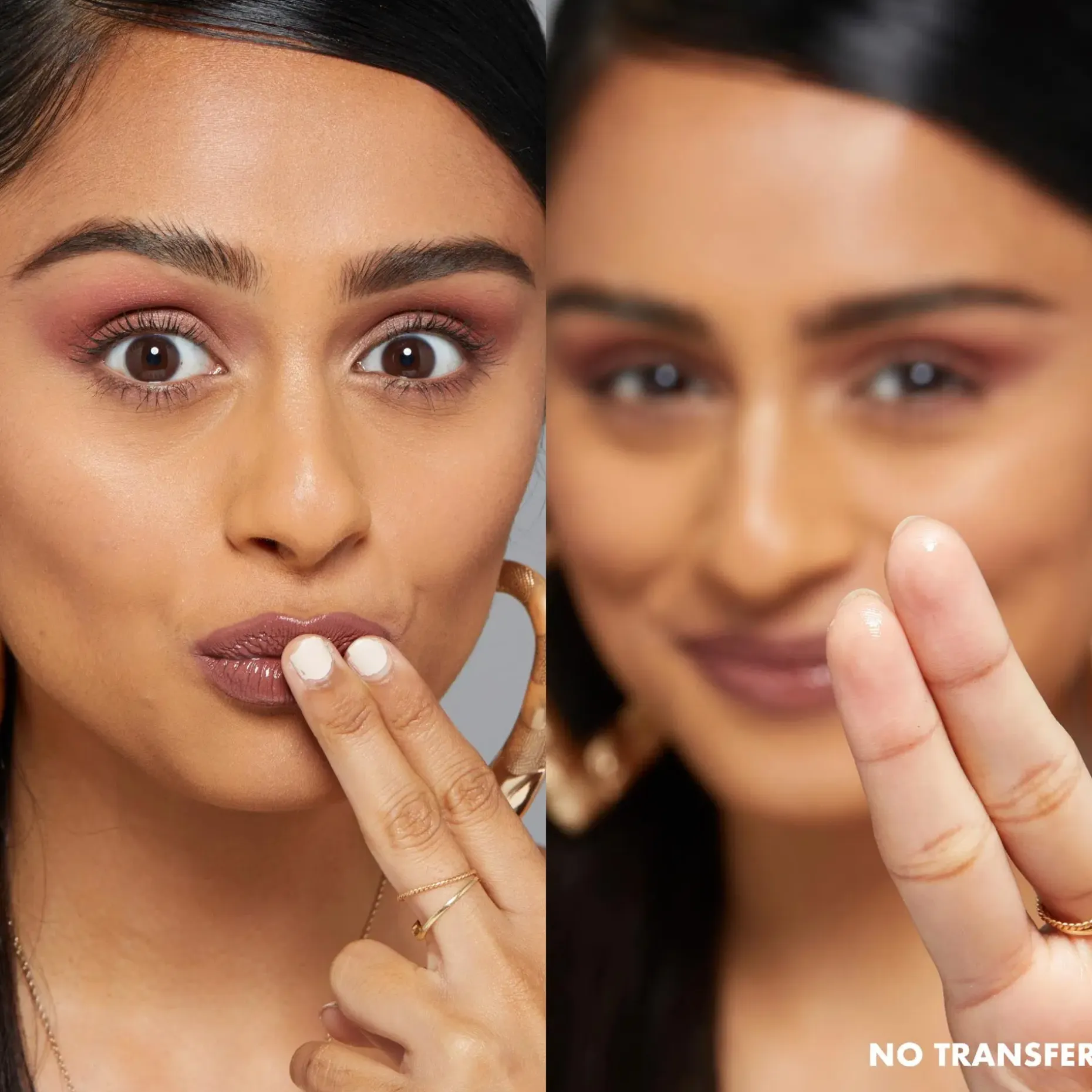 Kestää jopa 16 tuntia – ei tahraa. Pysyy paikoillaan, ei valu tai haalistu: Voit suudella, juoda, ravistaa hiuksiasi – jopa käyttää sitä kasvomaskin alla!