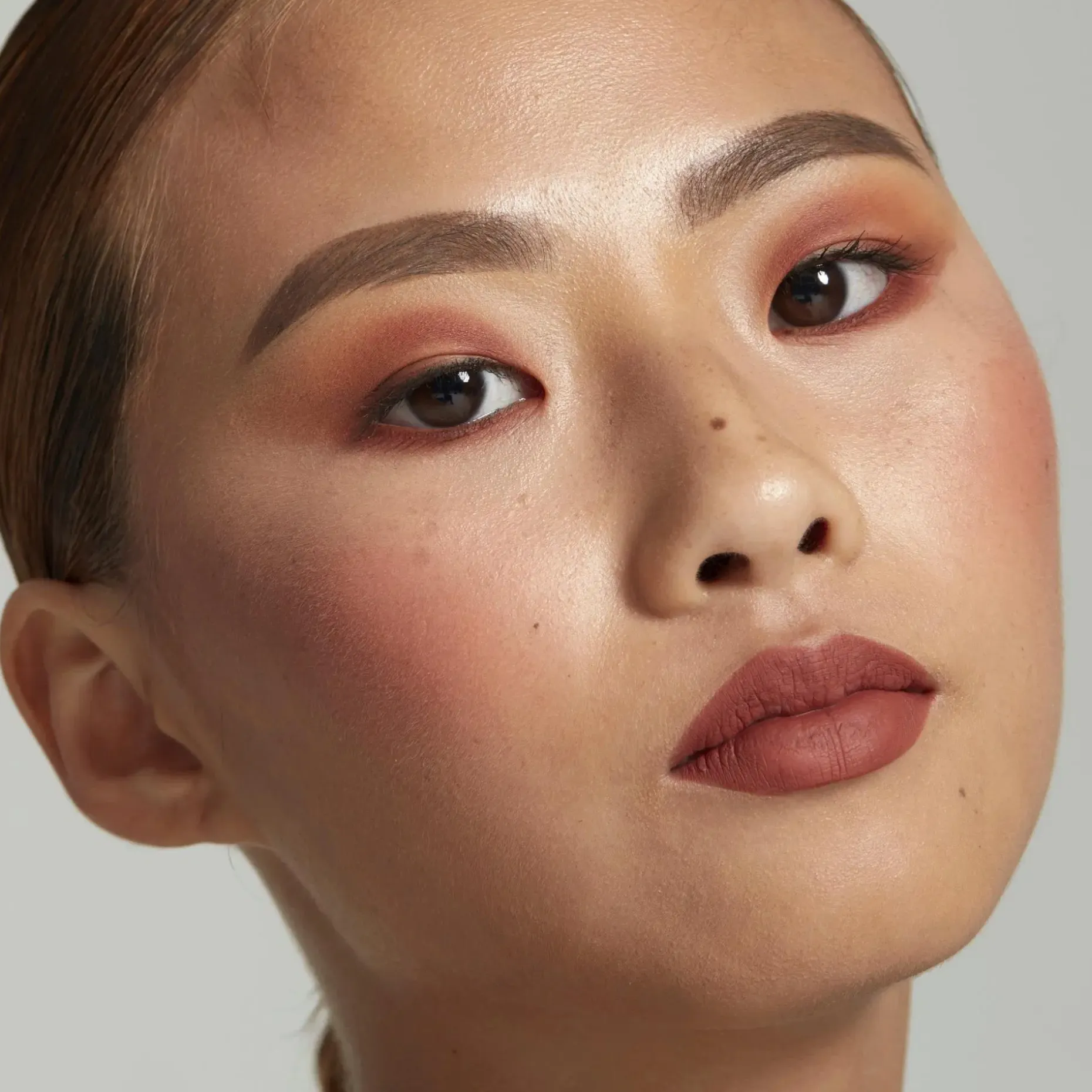 Aloita levittämällä pohjustusainetta. Levitä meikkisiveltimellä ensin pohjasävyä ja sen jälkeen tummempaa sävyä. Häivytä huolellisesti. Katso pakkausselosteesta mitä sävyjä voidaan käyttää luomivärinä.