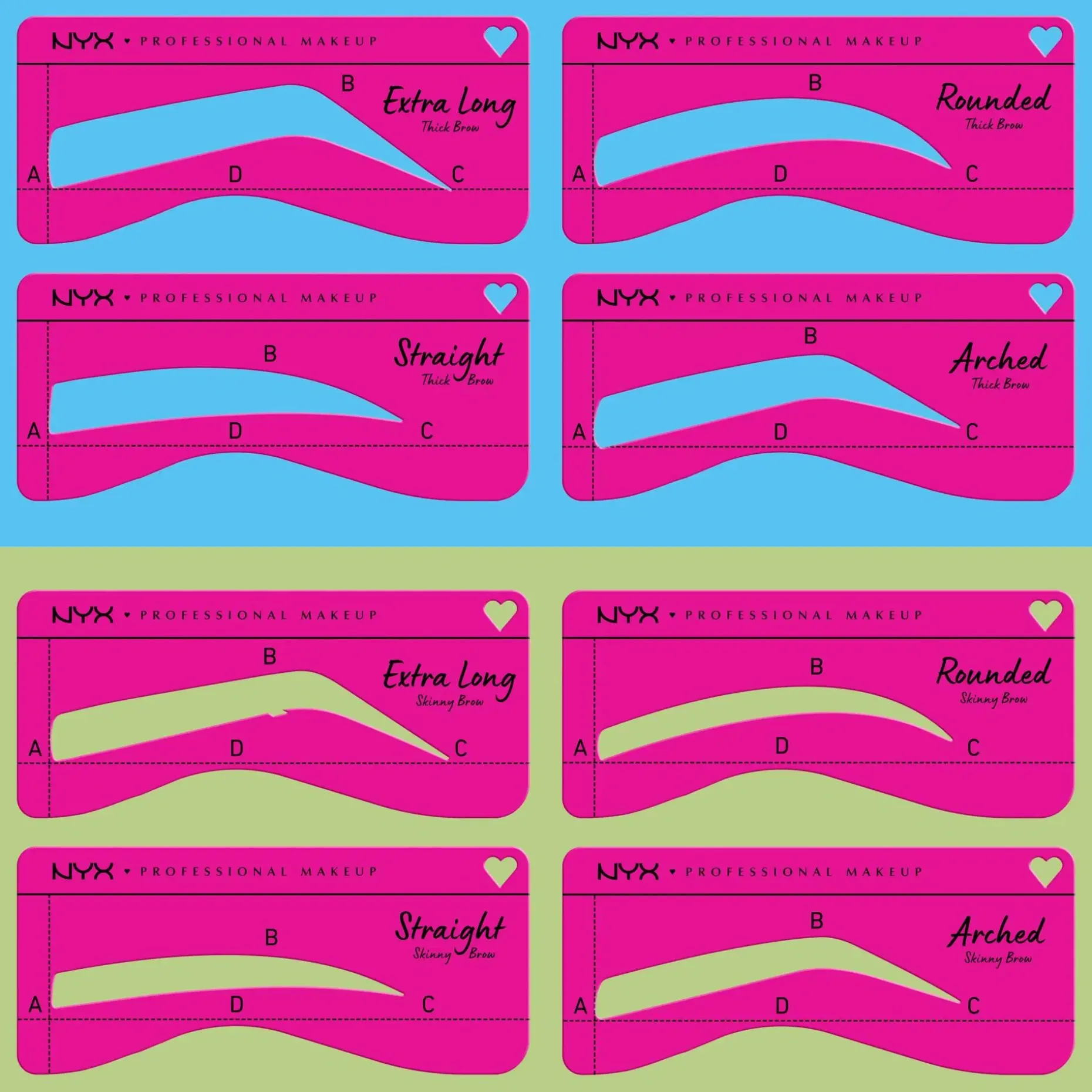 NYX Professional Makeup Zero To Brow Stencil -sapluunan avulla piirrät helposti haluamasi kulmien muodon riippumatta siitä, haluatko täyteläisemmät tai ohuemmat kulmat. Valitse joko ”Skinny” tai ”Thick” -sapluuna ja luo täydellinen kulmalook yhdessä Zero To Brow Longwear -kulmageelin kanssa. Kummassakin sapluunassa on 4 eri muotoa, joten voit luoda juuri sellaiset kulmat kuin haluat.
