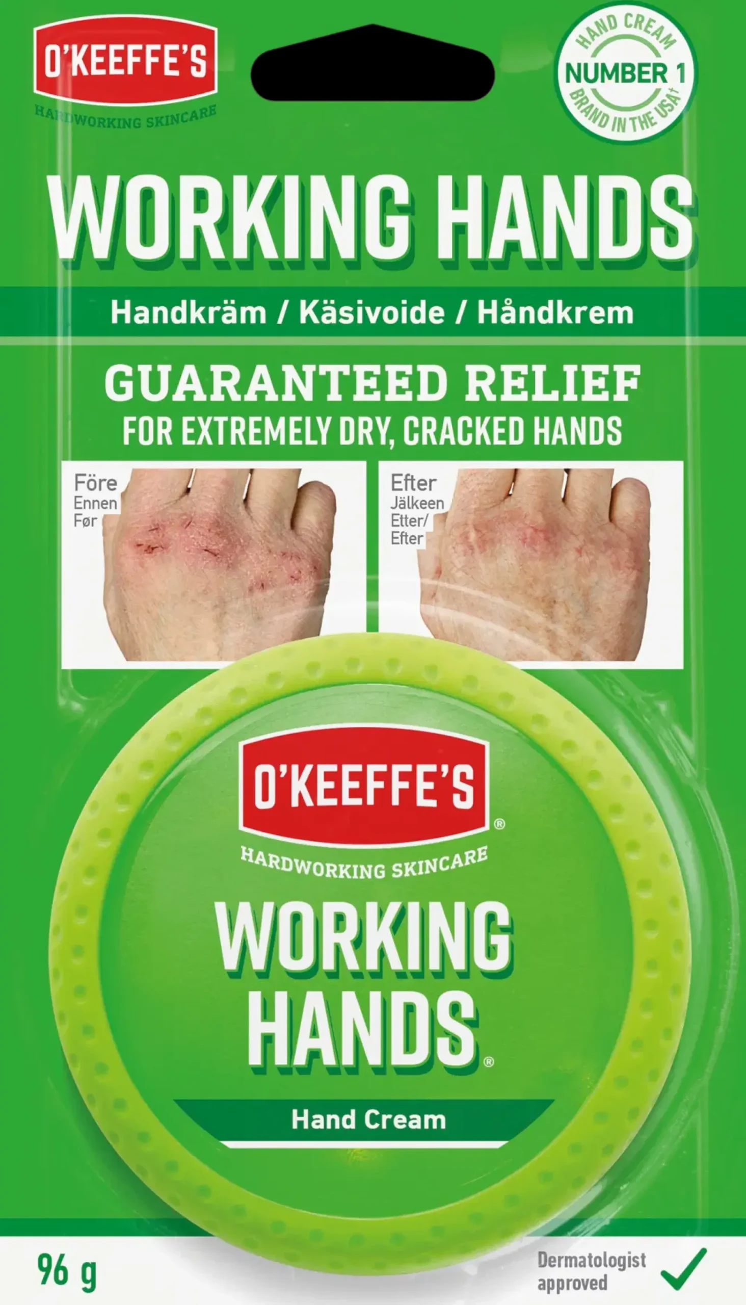 Kuivalle iholle tarkoitettu vahamainen käsivoide, joka sopii myös atoopikoille. Hajuton, rasvaton, eikä tahmaa käsiä. O’Keeffe’s on kehitetty antamaan lievitystä hyvin kuivalle iholle, vähentämään kuivuutta ja ylläpitämään ihon kosteutta. O’Keeffe´s on noussut myyntimenestykseksi maailmalla, se on Amerikan myydyin käsivoide.