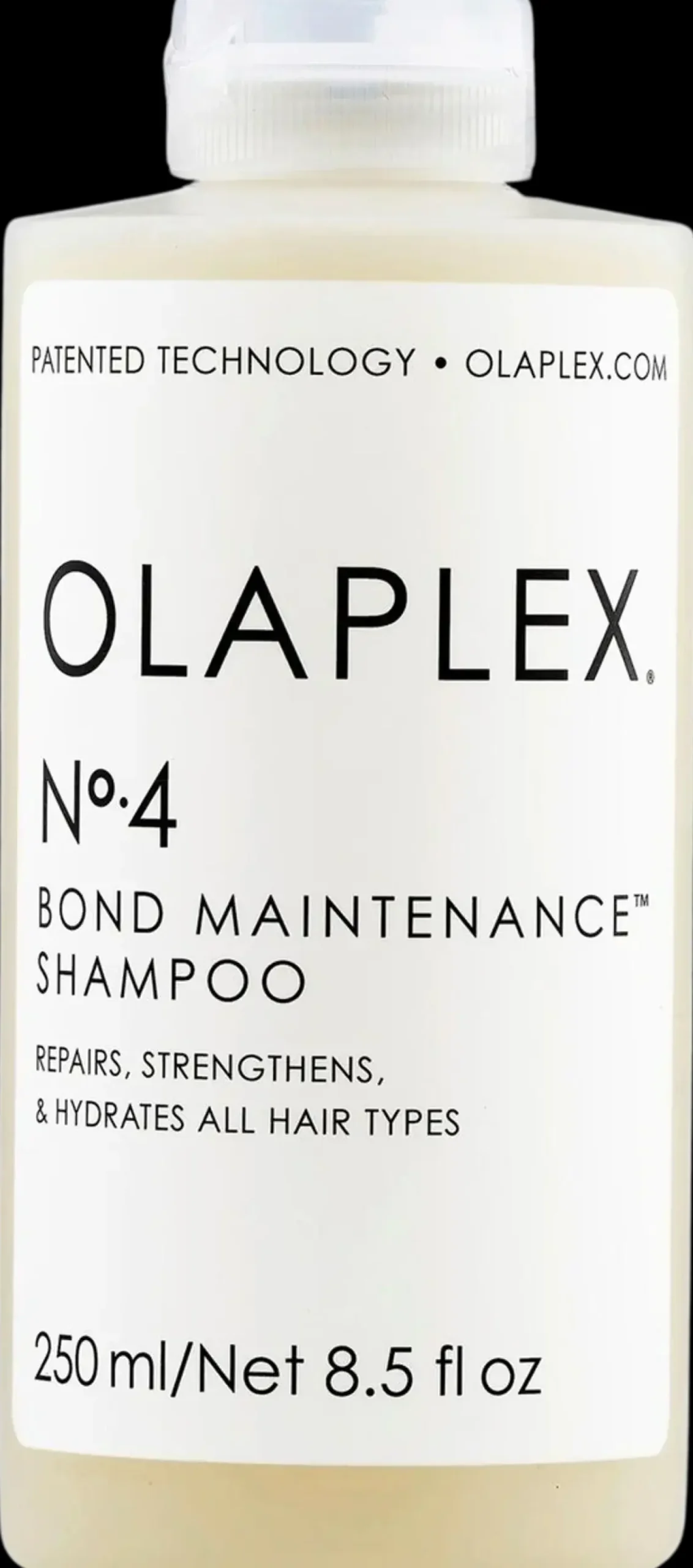 Olaplex No. 4 Bond Maintenance Shampoo vahvistaa, korjaa ja kosteuttaa hiuksia tehden ne kiiltäviksi ja helposti käsiteltäviksi. Sopii kaikille hiustyypeille, myös värjätyille hiuksille. Olaplex No.4 sisältää patentoidun Bond Building Chemistry -koostumuksen, jossa vaikuttavana aineena on Olaplex-salonkituotteista tuttu Bis-Aminopropyl Diglycol Dimaleate. Vaikuttavaa ainesosaa ei löydy mistään muista hiuskosmetiikkatuotteista. Kuten muutkin Olaplex-tuotteet, No. 4 shampoo on valmistettu ilman sulfaatteja, parabeenejä ja gluteenia. Tuote on vegaaninen.