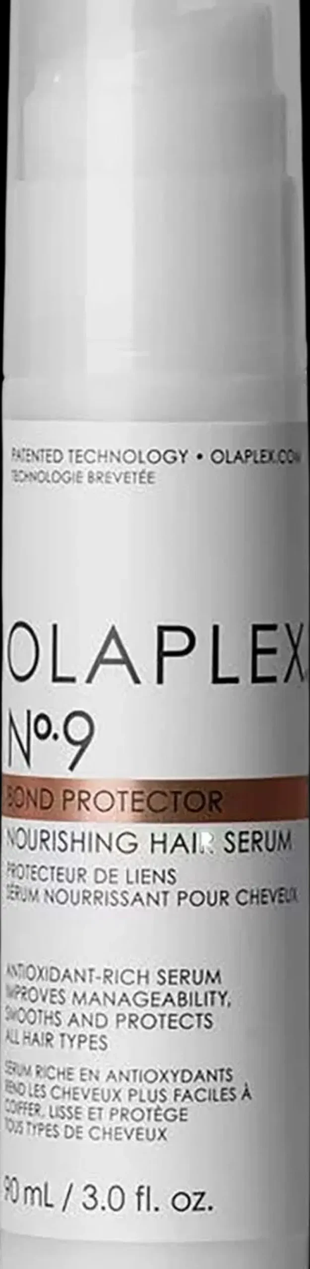 Monikäyttöinen ravitseva OLAPLEX® No.9 BOND PROTECTOR NOURISHING HAIR SERUM -hiusseerumi soveltuu kaikille hiuslaaduille ja rakenteille. Olaplexin patentoiman Bond Building -teknologian sisältämä kevyt antioksidanttirikas seerumi suojaa hiuksia tehden niistä terveemmät. No.9 on täynnä antioksidantteja, jotka neutraloivat vapaita radikaaleja ja toimivat suojana ilmansaasteita vastaan, suojaavat hiuksia katkeilulta sekä lämpötyökalujen kuumuudelta.