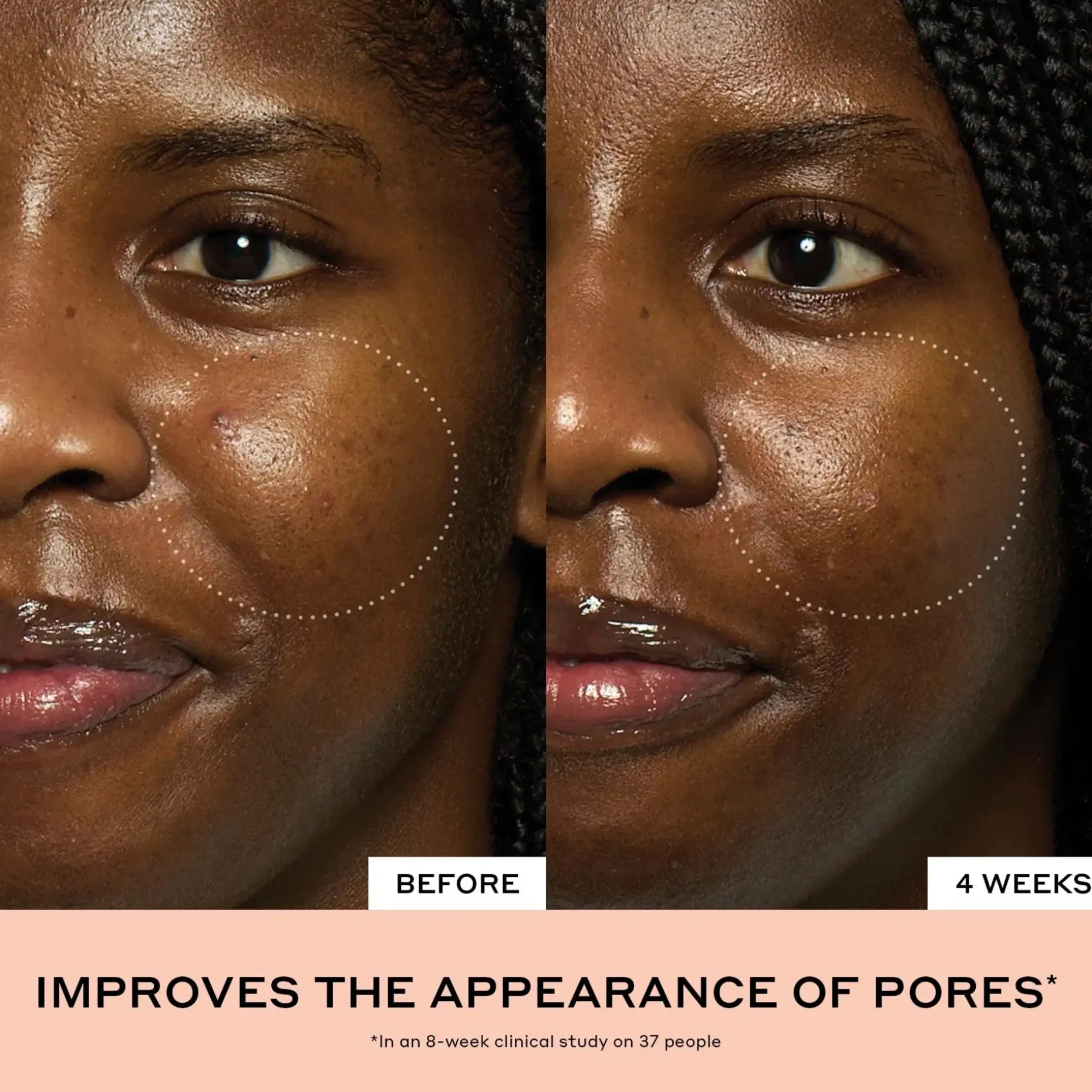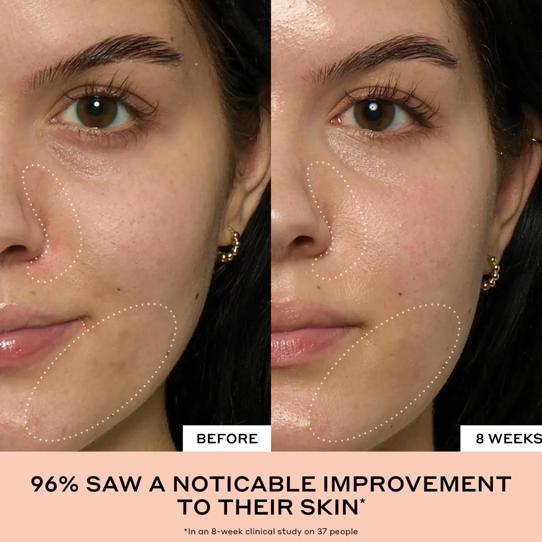 Tämä persikkavoimalla varustettu, pehmoinen geelimäinen seerumi liukuu iholle antaen välittömän, lasittuneen hehkun ja antioksidanttirikkaan kosteutuksen, joka kestää jopa 8 tuntia. Se paisuttaa ihoa välittömästi, tarkentaa huokosia ja antaa valoa heijastavan, heleän lopputuloksen samalla kun se kirkastaa ihoa ajan myötä.