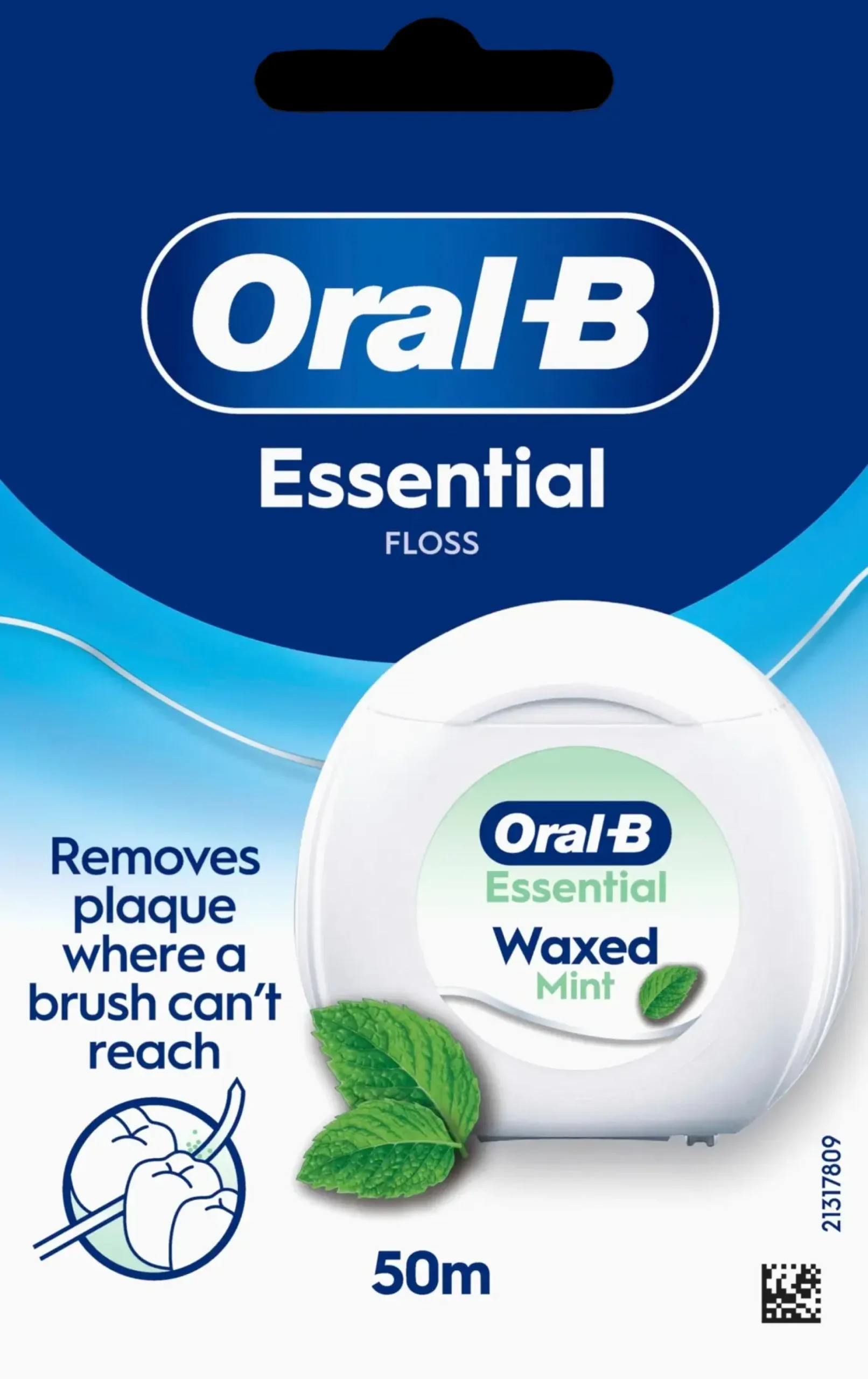 Puhdista hammasvälit tehokkaasti Oral-B Essential -hammaslangalla. Tämä vahattu hammaslanka liukuu hammasvälissä helposti ja mahtuu pienimpiinkin rakoihin vahvan ja rispaantumattoman rakenteensa ansiosta. Se auttaa puhdistamaan kohdat, joihin ei ulotuta pelkällä harjauksella, ja vähentää plakkia. Virkistävä mintun maku antaa raikkaan tunteen, ja hammaslankaa voi käyttää sekä aamulla että illalla osana suunhoitorutiinia ikenien ja hampaiden terveyden ylläpitämiseksi.