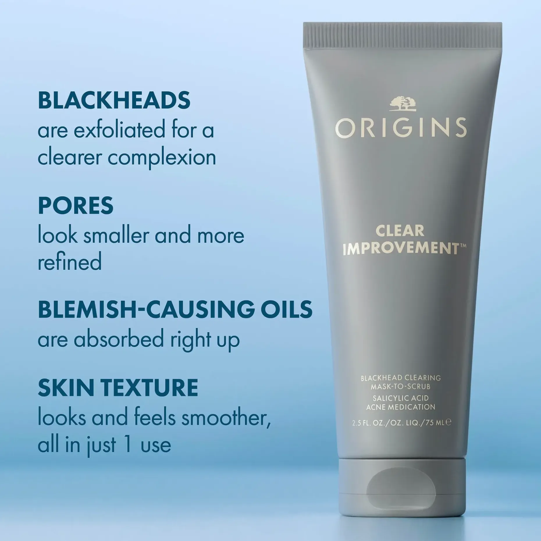 Clear Improvement Blackhead Clearing Mask-To-Scrub on tehokas kasvonaamio, joka on suunniteltu rasvaiselle ja epäpuhtauksiin taipuvaiselle iholle. Salisyylihappoa sisältävä koostumus vähentää tehokkaasti mustapäiden näkyvyyttä ja kontrolloi niitä aiheuttavia öljyjä.