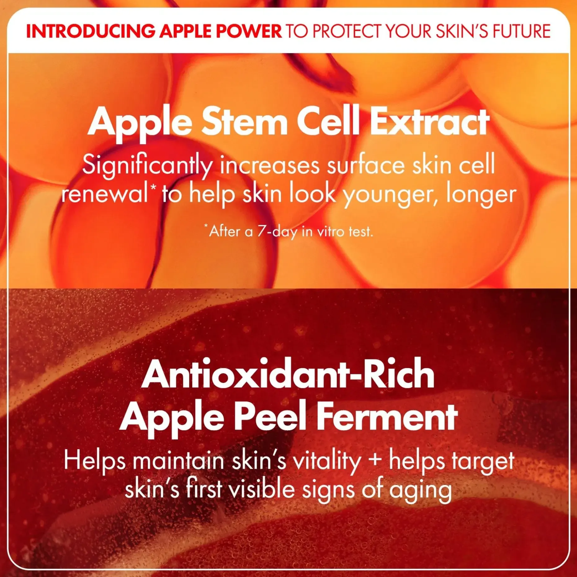 UUSI tasoittava kasvokuorintamme – joka on täynnä 100 000 omenan kantasolujen uutetta – hienosäätää näkyvästi ihohuokosia ja ihon rakennetta superhienon, säteilevän ilmeen saavuttamiseksi.