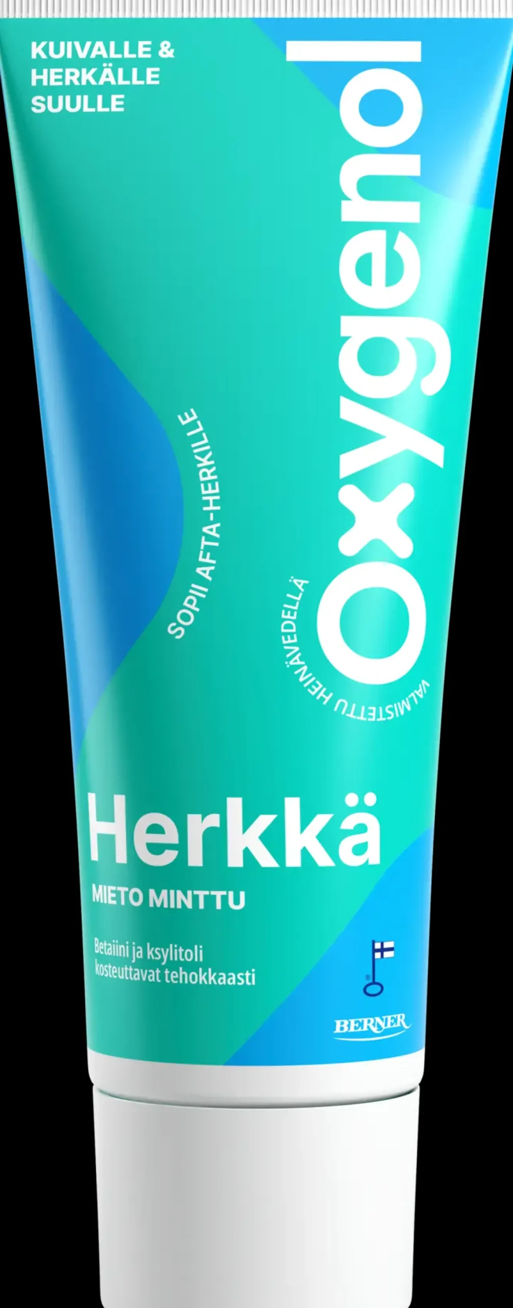 Kotimainen, miedon mintun makuinen fluorihammastahna kuivalle ja herkälle suulle. Sisältää kotimaista betaiinia, joka yhdessä ksylitolin kanssa auttaa suun kuivuuteen. Matalavaahtoinen. Sopii afta-herkille. Ei sisällä natriumlauryylisulfaattia (SLS). Fluori vahvistaa hammaskiillettä ja suojaa reikiintymiseltä, ksylitoli auttaa ehkäisemään plakin muodostumista. Sisältää ksylitolia 10%, fluoria 1450 ppm. Vegaaninen. Tuotteelle on myönnetty Avainlippu-tunnus.
