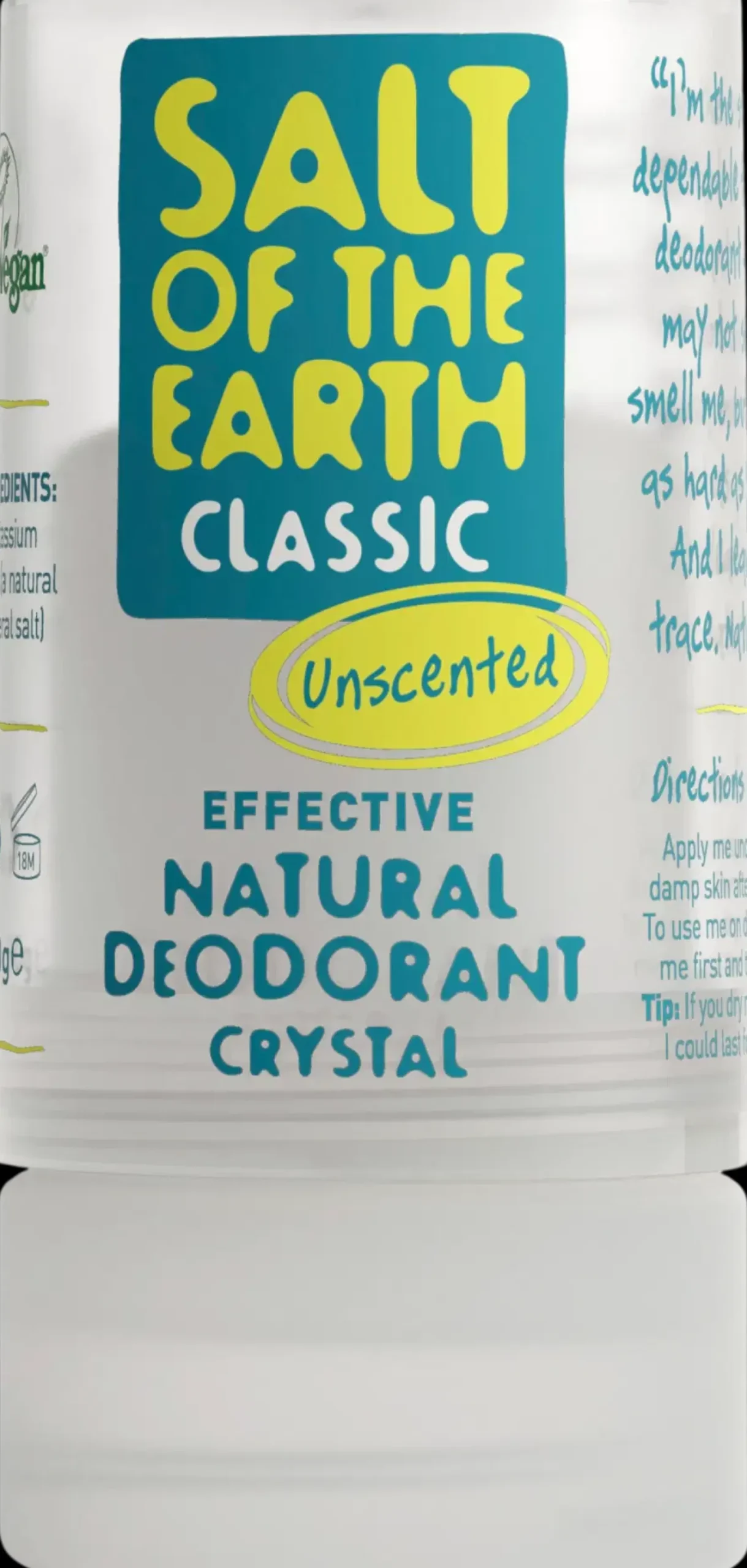– Salt of the Earth tehokas ja luonnollinen deodorantti! Salt of the Earth deodoranttien vaikuttavana aineena on potassium alum (aluna – eli mineraalisuola) joka vähentää iholla asustavien hien hajua aiheuttavien bakteerien kasvua, kuitenkaan luonnollista hikoilua estämättä. Potassium alum on antibakteerinen. Alunaa on käytetty luonnonmukaisena deodoranttina satoja vuosia. Perinteinen kivi mallin deodorantti on täysin tuoksuton. Hyvin pidettynä kivi mallin deodorantti saattaa kestää jopa vuoden!