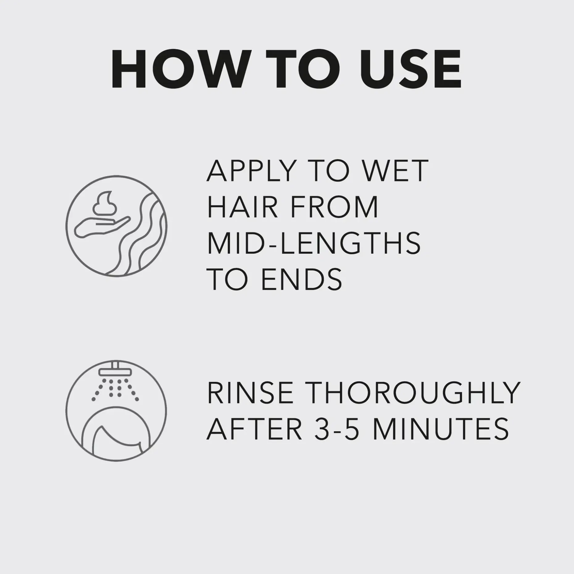 1. Levitä shampoopesun jälkeen märkiin hiuksiin pituuksista latvoihin.