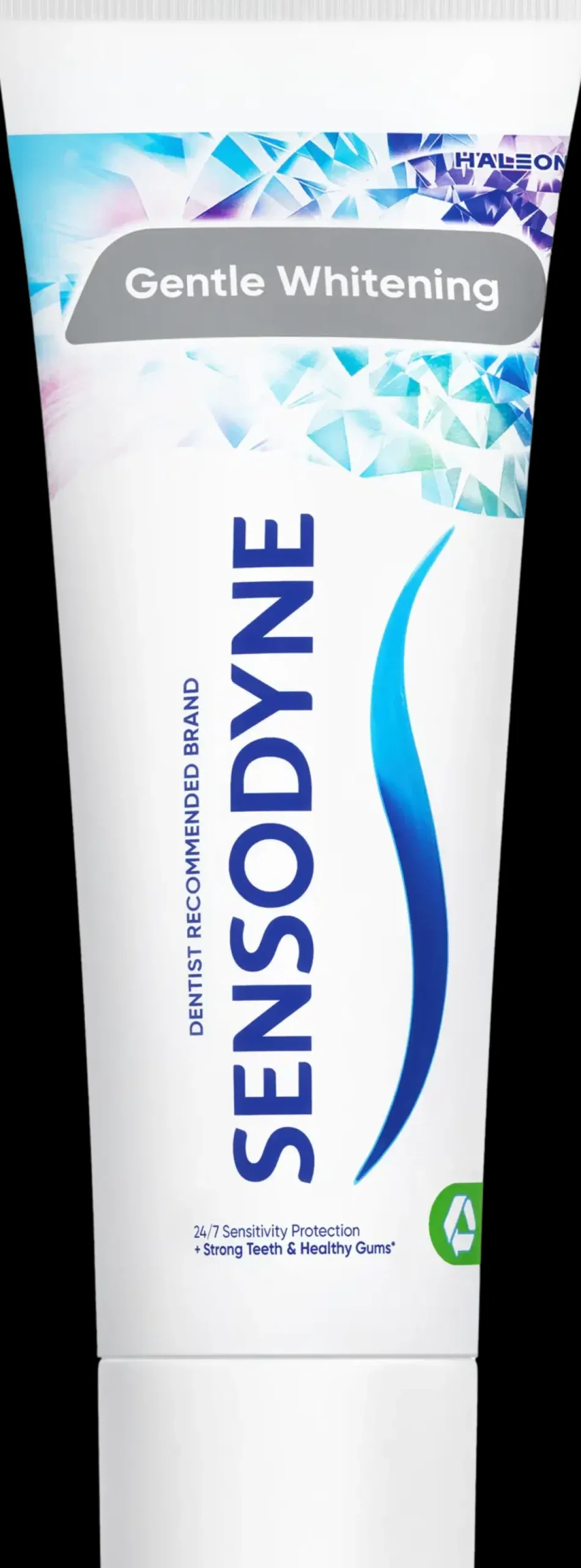 Sensodyne Gentle Whitening on päivittäiseen käyttöön tarkoitettu hammastahna, joka kahdesti päivässä käytettynä suojaa vihlontaa vastaan ja lievittää vihlontaa kliinisesti osoitetusti. Kahdesti päivässä käytettynä Sensodyne Gentle Whitening -hammastahna antaa ympärivuorokautista suojaa vihlontaa vastaan ja puhdistaa tehokkaasti. Sisältää fluoria, joka vahvistaa hammaskiillettä ja ehkäisee reikiintymistä. Sensodyne Gentle Whitening -tahnassa on raikas mintun maku.