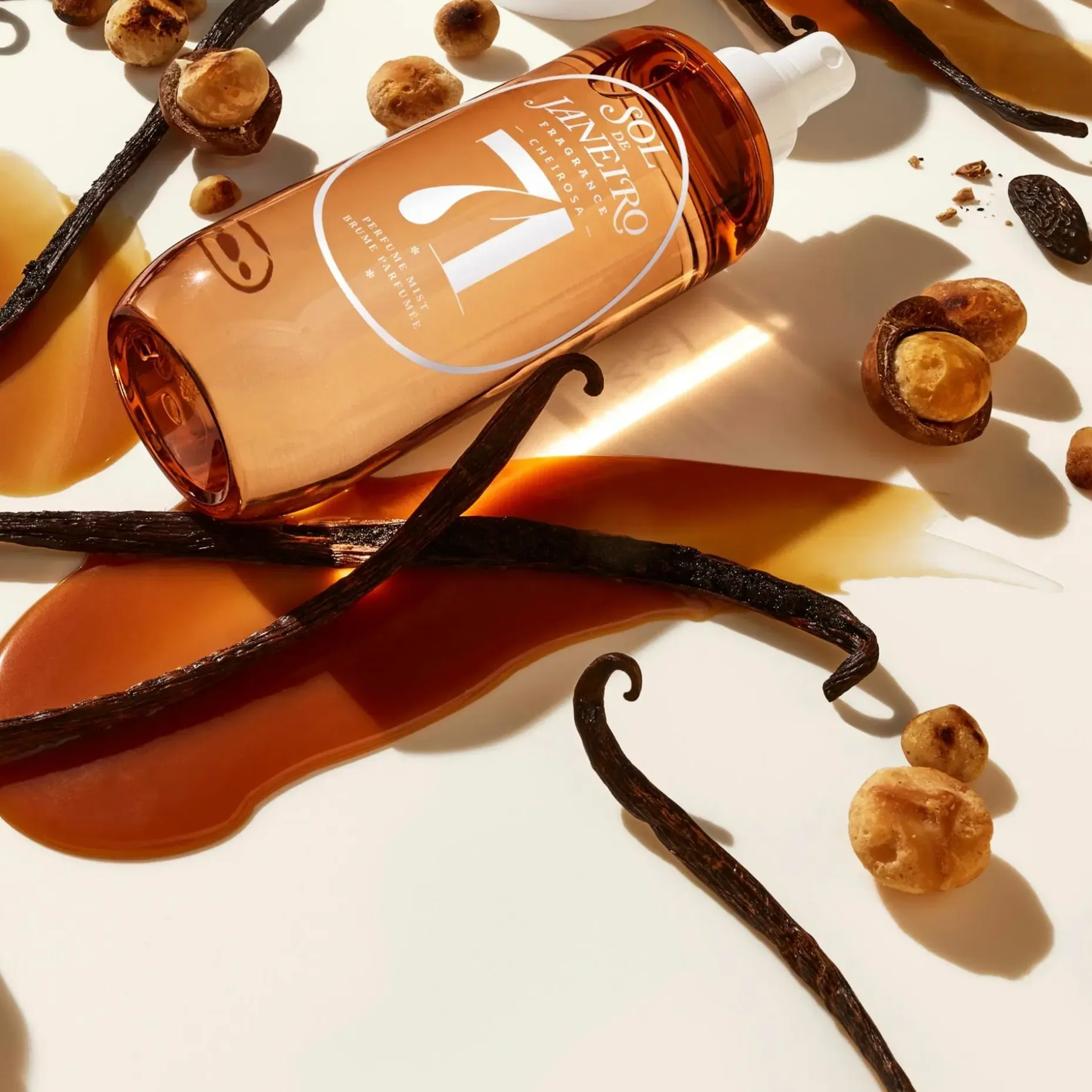Karamellisoidun vaniljan ja paahdetun makadamian tuoksuinen vartalosuihke sopii erinomaisesti koko vartalolle ja hiuksille, ja tuo ihanan tuoksun myös alusvaatteisiin.