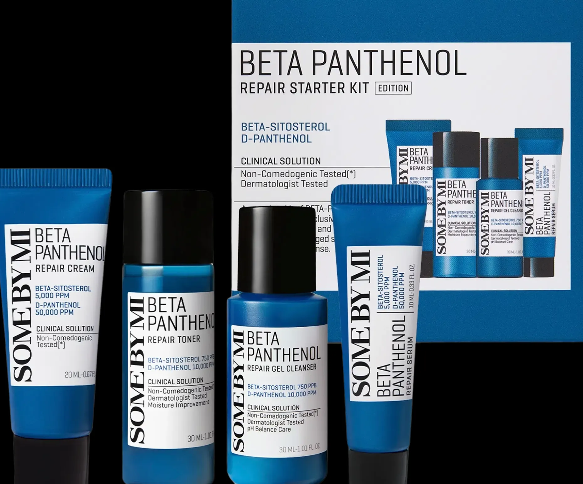 Some By Mi Beta Panthenol Repair Starter Kit sisältää neljä Some By Mi Beta Panthenol -sarjan matkakokoista ihonhoitotuotetta.