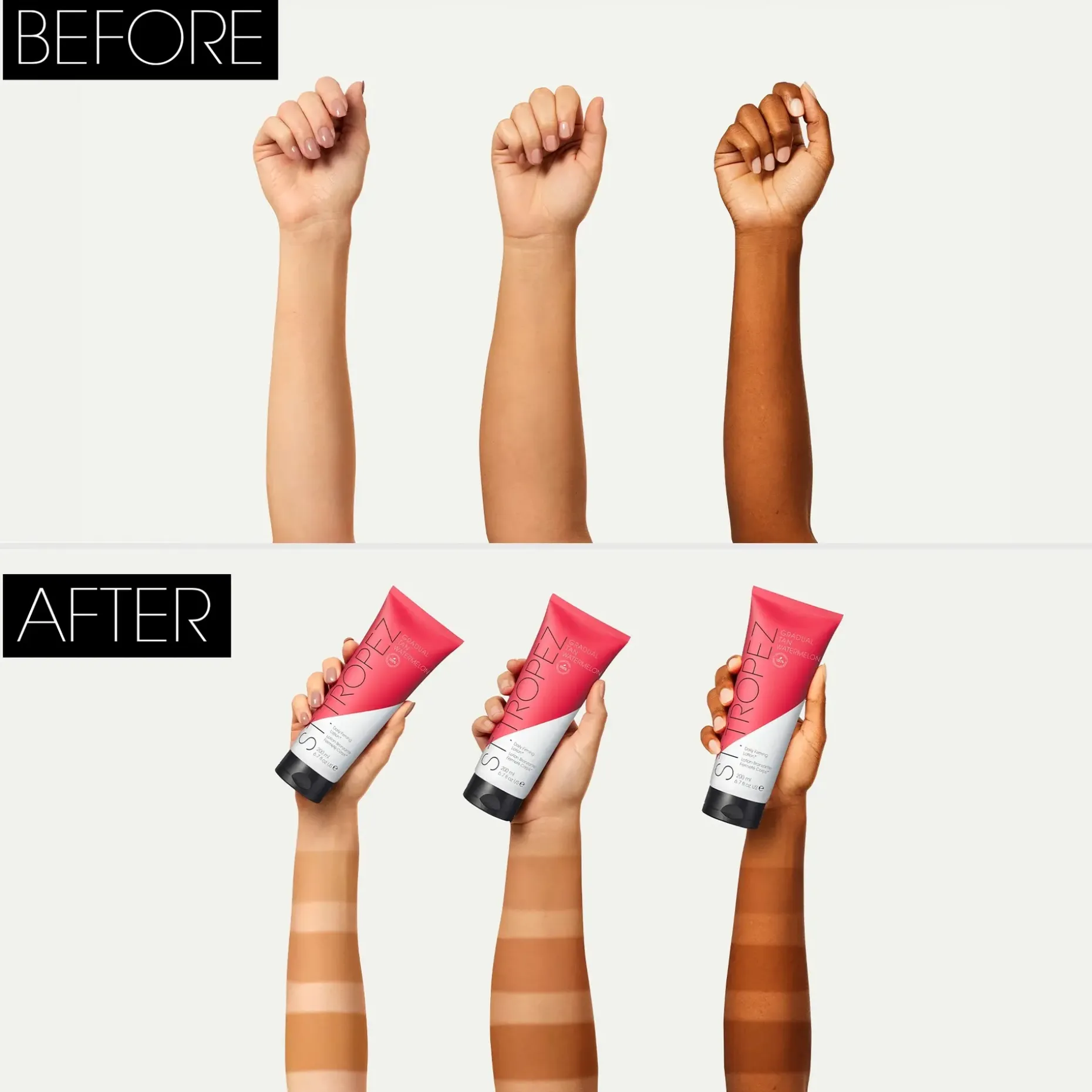 Aqua (Water), Coco-Caprylate, Dihydroxyacetone, Cetearyl Alcohol, Pentaerythrityl Distearate, Glycerin, Cetearyl Glucoside, Dimethicone, Ethoxydiglycol, Vitis Vinifera (Grape) Seed Oil, Alaria Esculenta Extract, Rubus Idaeus (Raspberry) Seed Oil, Vaccinium Myrtillus Seed Oil, Biosaccharide Gum-1, Citrullus Lanatus (Watermelon) Fruit Juice, Sodium Hyaluronate, Tocopherol, Helianthus Annuus (Sunflower) Seed Oil, Caprylic/Capric Triglyceride, Capryloyl/Capryloyl Leucine Isosorbide Esters, Ceteareth-20, Parfum (Fragrance), Phenoxyethanol, Caprylyl Glycol, Cellulose, Xanthan Gum, Isosorbide, Pentaerythrityl Tetra-Di-t-Butyl Hydroxyhydrocinnamate, Linalool, Hexanediol, Hydroxyacetophenone, Alpha-Isomethyl Ionone, Benzyl Alcohol, Sodium Benzoate, Lactic Acid, Potassium Sorbate, Citric Acid.