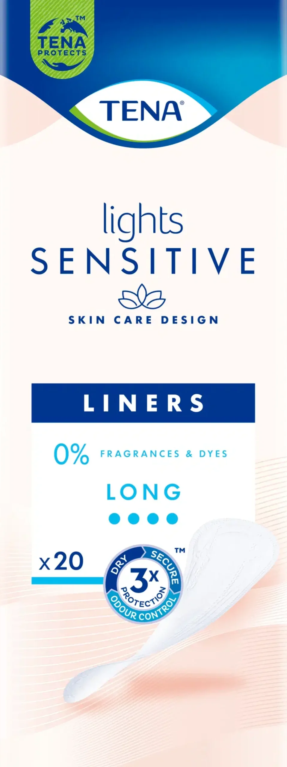TENA lights Sensitive pikkuhousunsuojat on suunniteltu erityisesti pienille odottamattomille pisaroille. TENA lights Sensitive Long pikkuhousunsuoja on hieman imukykyisempi ja pidempi pikkuhousunsuoja. Se on yhtä ohut (3,5 mm) ja huomaamaton kuin tavalliset pikkuhousunsuojat, mutta kaksi kertaa imukykyisempi ja vähentää mahdollisia hajuja. FeelFresh™-teknologia lukitsee kosteuden nopeasti sisäänsä ja säilyttää olon kuivana ja raikkaana. TENA lights Sensitive -pikkuhousunsuojat myötäilevät kehoasi ja ovat niin silkinpehmeitä, että tuskin huomaat niitä. Olosi on kuiva ja raikas – joka päivä.