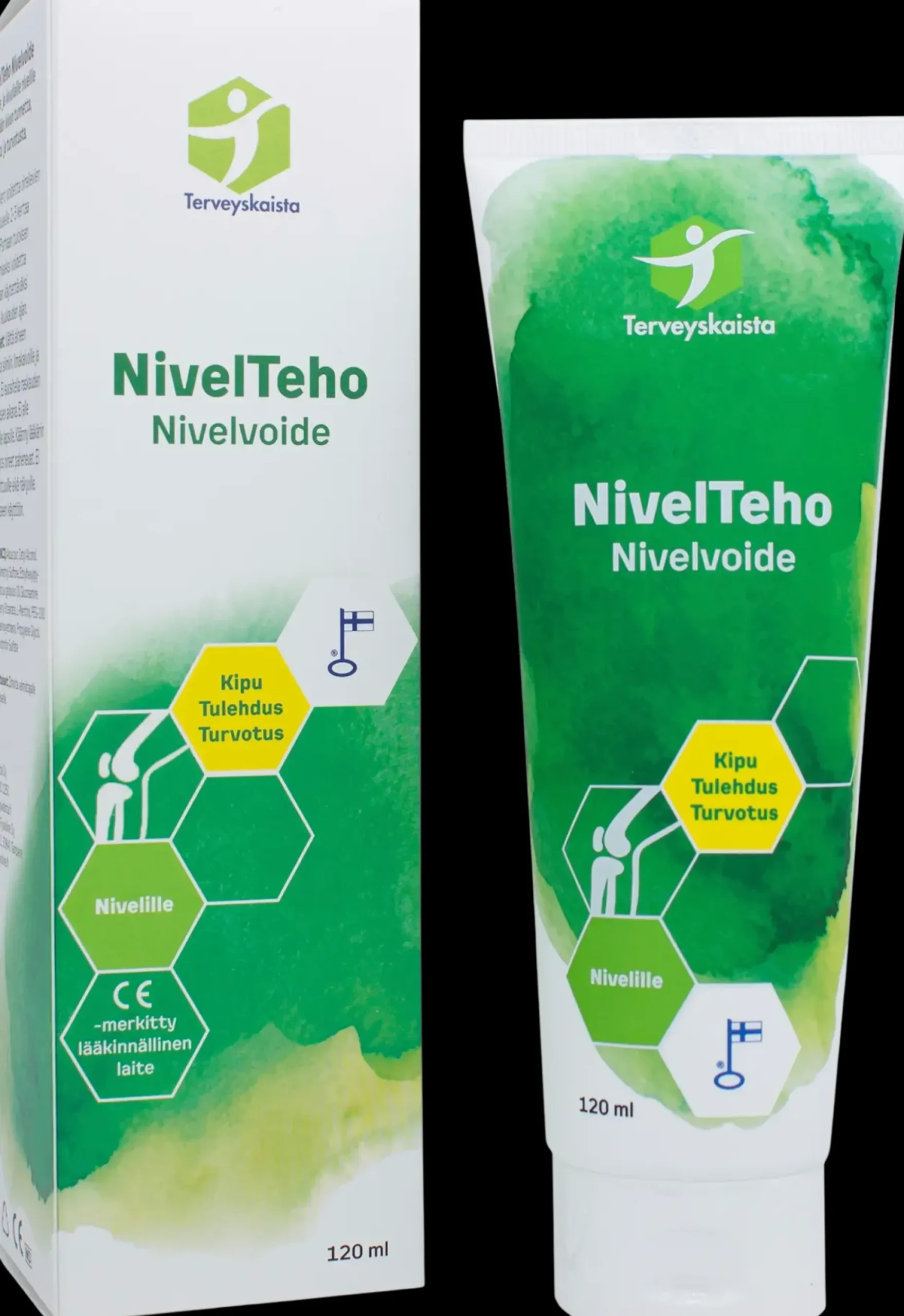 NivelTeho nivelvoide oireileville ja kivuliaille nivelille lievittämään kivun tunnetta, tulehdusta, ja turvotusta. Käyttö: Hiero voidetta oireilevien nivelten alueelle 2–3 kertaa päivässä. Parhaan tuloksen saavuttamiseksi voidetta suositellaan käytettäväksi vähintään kuukauden ajan. Varoitukset: Vältä aineen joutumista silmiin, limakalvoille ja haavoihin. Ei suositella raskauden tai imetyksen aikana. Ei alle 2-vuotiaille lapsille. Käänny lääkärin puoleen, jos oireet pahenevat. Ei lasten ulottuville eikä näkyville. Vain ulkoiseen käyttöön.