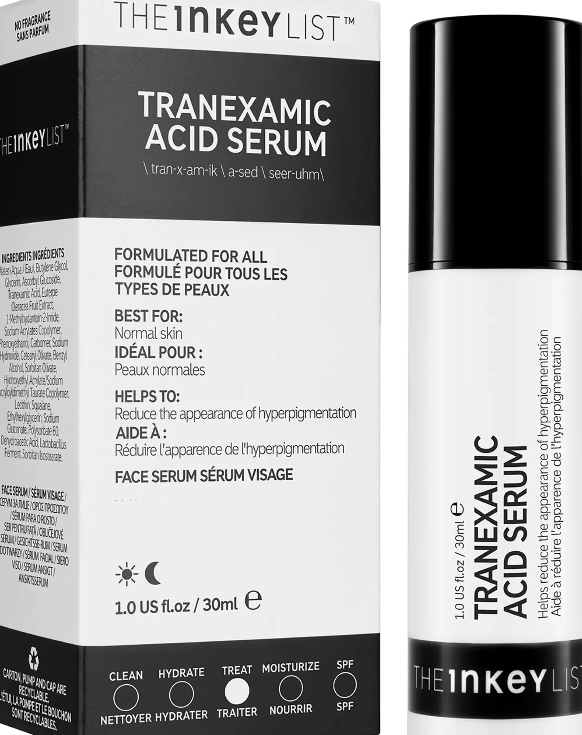 Yön yli vaikuttava aine, joka hoitaa hyperpigmentaatiota ja häivyttää epätasaisuuksia ja tummia läiskiä. Se kirkastaa ihoasi sekä häivyttää tummia läiskiä ja ihon epätasaisuuksia. Seerumi sisältää 2 % traneksaamihappoa, 2 % ihon sävyä tasoittavaa akaimarjauutetta sekä 2 % ihoa kirkastavaa sankaria, C-vitamiinia, joten se kirkastaa ihoa ja tekee siitä tasaisemman sävyisen.