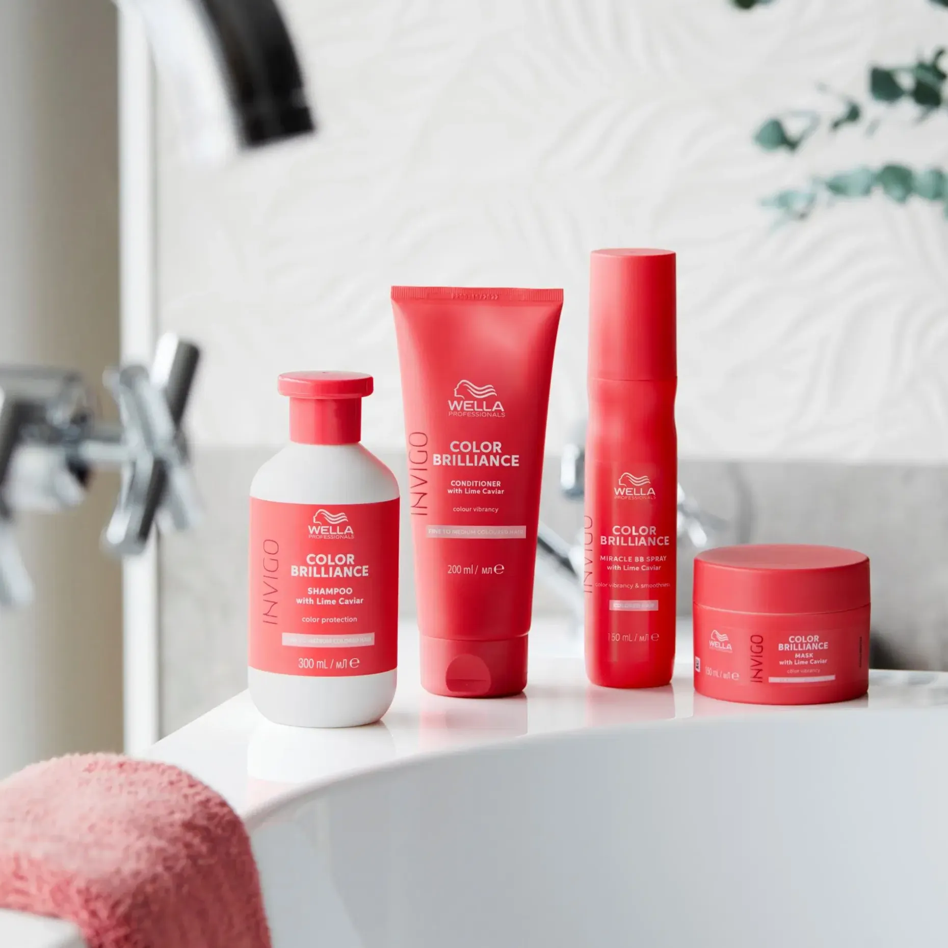 Wella Professionals Invigo Color Brilliance Conditioner Fine on väriä ylläpitävä hoitoaine hennoille tai normaaleille hiuksille. Suunniteltu säilyttämään värin eloisuus ja parantamaan hiusten pintaa. Tekee hiuksista joustavat, kiiltävät ja vastustamattoman pehmeät. Sisältää Color Brilliance-Blend™ -yhdisteen ja limekaviaaria, joka sisältää runsaasti antioksidantteja ja vitamiineja ja auttaa hillitsemään värjäyksen jälkeistä hapettumista. Saatavana kaksi kokoa: 200 ml ja 1000 ml.