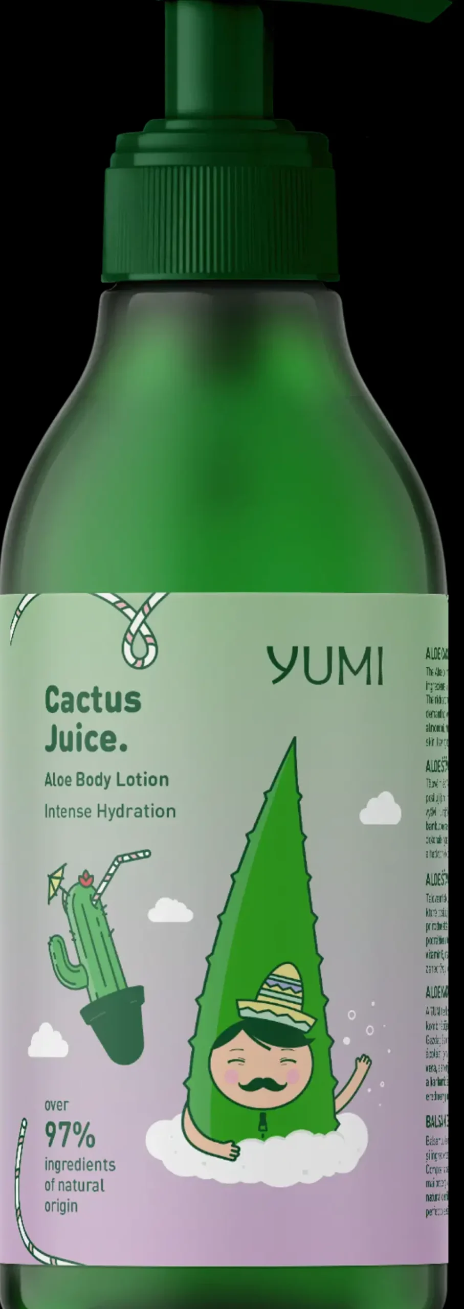 Yumi Aloe vera & kaktus vartalovoide on täydellinen tuote janoiselle iholle. Yumi-vartalovoide yhdistää tehokosteuttavan 99 % aloe-mehun tarkoin valittuihin ihoa hoitaviin ainesosiin. Täyteläinen 97 % luonnollinen koostumus kosteuttaa kaikkein vaativintakin – kuivaa ja ärtynyttä – ihoa. Rauhoittava aloe vera -mehu tehokosteuttaa ihoa. Sheavoi auttaa uudistamaan ihoa samalla rauhoittaen ärtynyttä ihoa. Aloesta peräisin oleva kasvikollageeni sekä manteli- ja kookosöljyt ravitsevat ihoa. E-vitamiini suojaa ihoa vapailta radikaaleilta. Urea syväkosteuttaa ja pehmentää ihoa. Allantoiini uudistaa ja hoitaa ihoa. Tuloksena kosteutettu, hyvinvoiva ja raikkaan tuoksuinen iho. Raaka-aineista 97 % luonnollista alkuperää olevia. Tuote on 100 % vegaaninen.