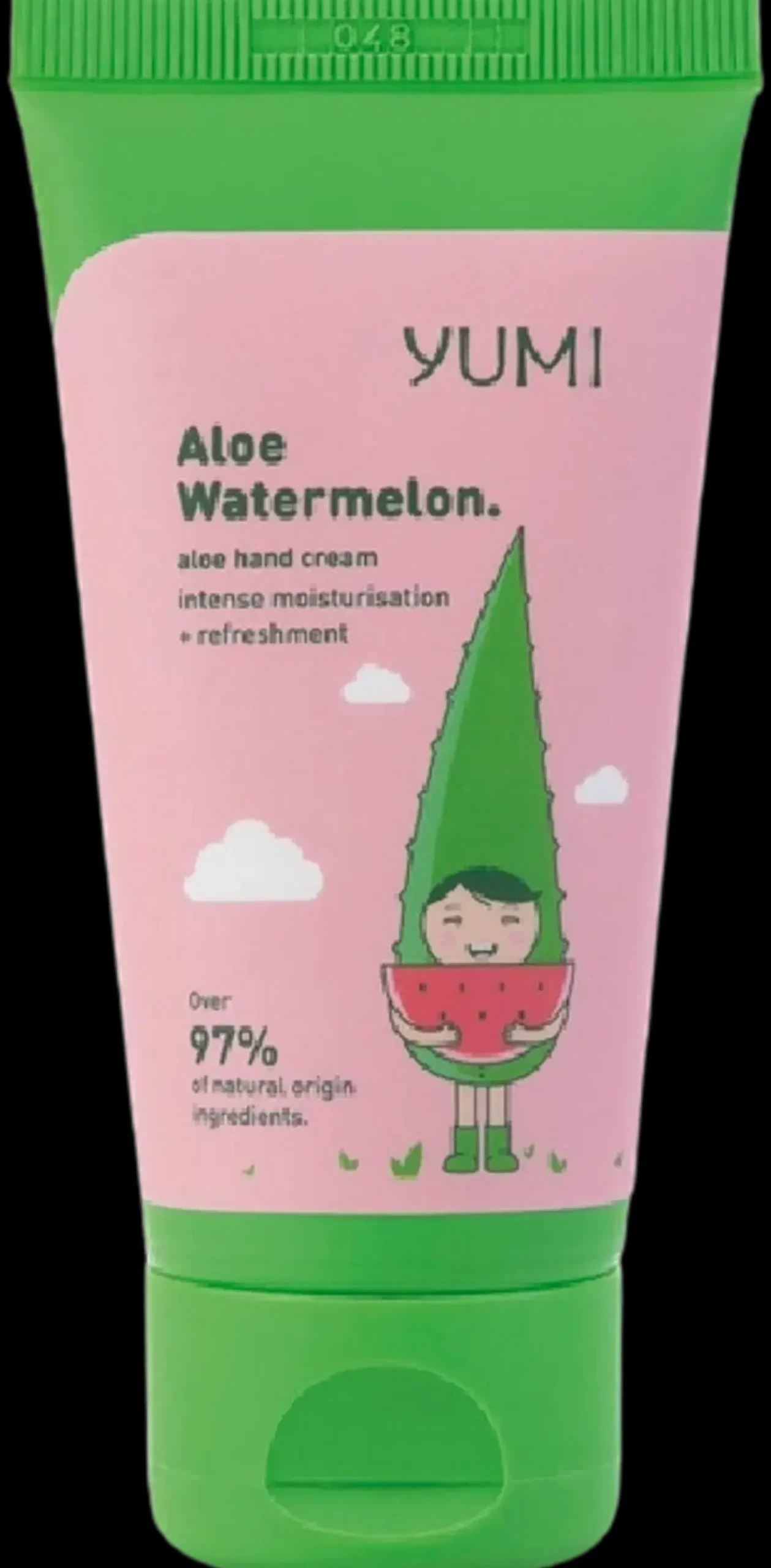 Yumi Aloe vera & vesimeloni käsivoide on täydellinen tuote janoiselle iholle. Yumi-käsivoide yhdistää tehokosteuttavan 99 % aloemehun tarkoin valituihin ihoa hoitaviin ainesosiin. Täyteläinen 97 % luonnollinen koostumus kosteuttaa kaikkein vaativintakin – kuivaa ja ärtynyttä – ihoa. Aloe rauhoittaa ja kosteuttaa ihoa. Sheavoi uudistaa ihoa. Manteli- ja kookosöljyt ravitsevat ihoa. E-vitamiini suojaa ihoa vapailta radikaaleilta. Urea syväkosteuttaa ja pehmentää ihoa. Allantoiini uudistaa ja hoitaa ihoa. Tuloksena silkinpehmeät ja hyvinvoivat kädet, jotka tuoksuvat herkulliselle! Raaka-aineista 97 % luonnollista alkuperää olevia. Vegaaninen.