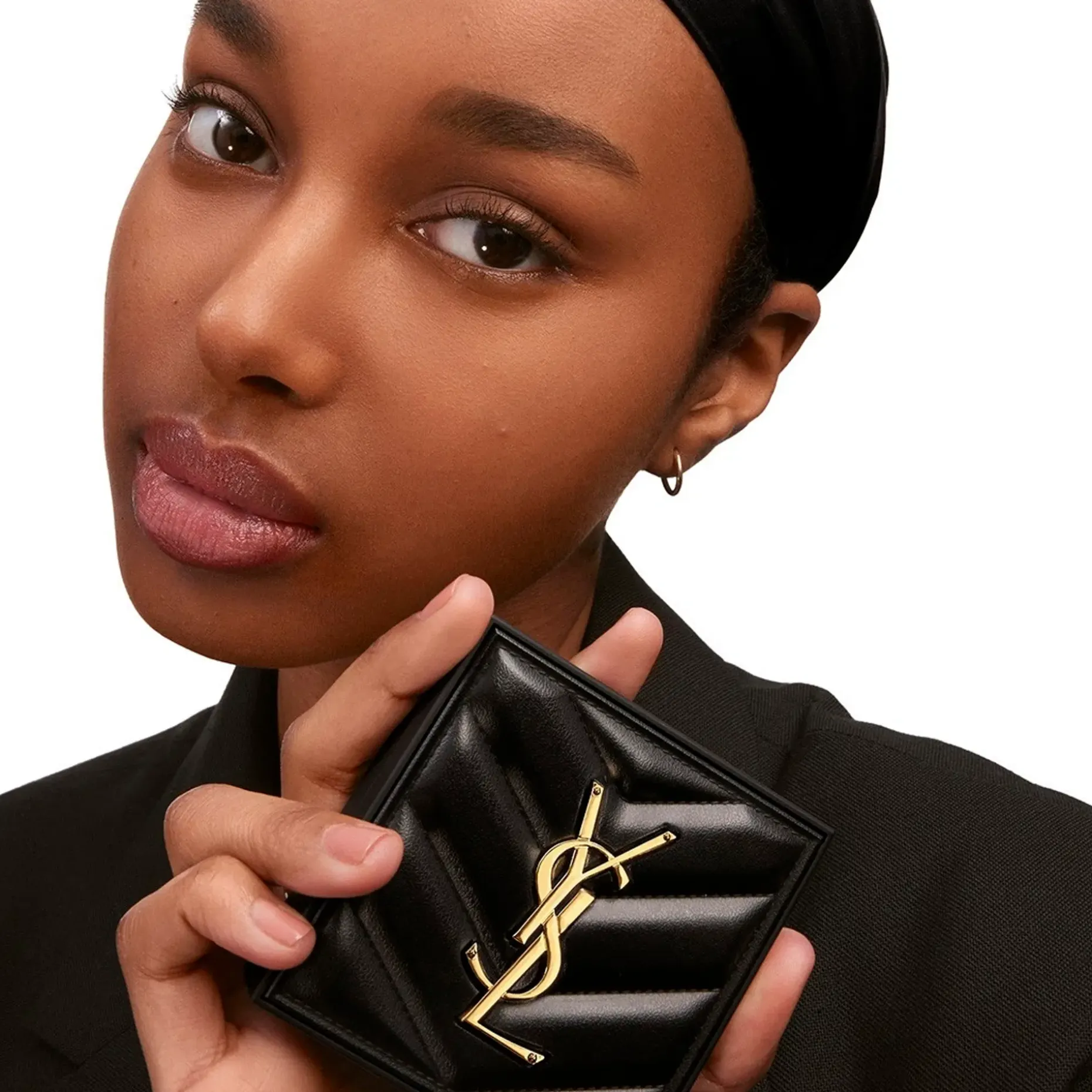 YSL:n ikoninen musta Chevron-nahkakotelo, jossa magneettinen lukko.