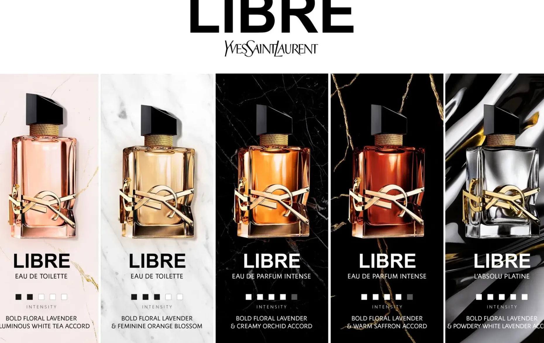 LIBRE, uusi Eau de Parfum Yves Saint Laurentilta. Vapaus elää täysin ja intensiivisesti. Äärimmäisen tyylikkäässä kukkaistuoksussa yhdistyvät sykähdyttävä laventeli ja aistillinen appelsiininkukka. Couture-tuoksun elegantissa pullossa ikoninen Yves Saint Laurent Cassandre-tunnus.