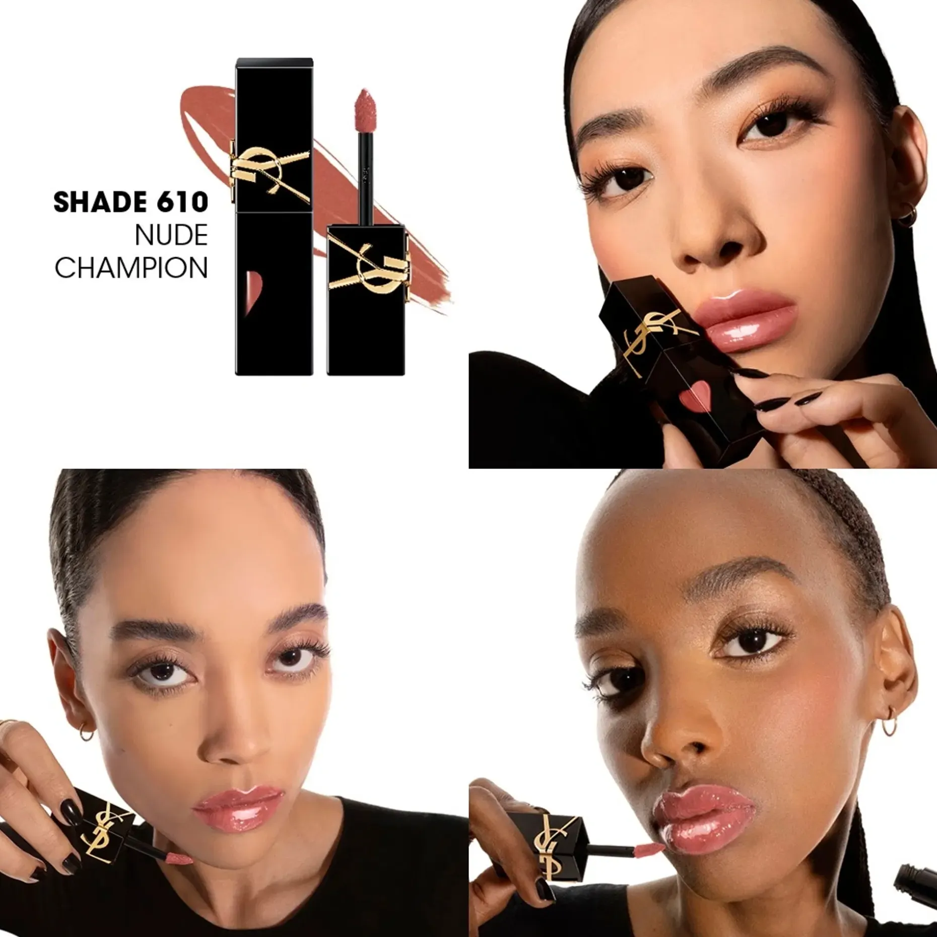 YSL THE INKS – NESTEMÄISET HUULIPUNAT UUDELLEENMÄÄRITELTYNÄ YSL THE INKS määrittelee nestemäiset huulipunat uudelleen ja tarjoaa parhaan valinnan THE INKS BLUR:n, pehmeän samettisen mattapinnan, ja THE INKS VINYL:n, erittäin kiiltävän pinnan, välillä. THE INKS BLUR on häivytetty mattahuulipuna, joka luo utuisen meikkituloksen. Jopa 12 tunnin kesto* ja jopa 24 tunnin kosteutus* antavat paljaan ihon tunteen. Kermainen koostumus sulautuu huulille tahmaamatta. *Kuluttajatesti 134 naisella HOITAVIA AINESOSIA SISÄLTÄVÄ KOOSTUMUS 70 % hoitavaa koostumusta, joka on rikastettu kaktusviikunalla ja tuberosauutteella Ourika Community Garden -puutarhastamme. EDUT Jopa 12 tunnin kesto* Jopa 24 tunnin kosteutus* 70 % hoitava koostumus *Kuluttajatesti 134 naisella TULOS Utuinen pinta ja eloisa värintoisto. Huulet näyttävät täyteläisemmiltä ja juonteet vähemmän näkyviltä. LEVITYSVINKKEJÄ Määrittele huulten ääriviivat applikaattorin pyöristetyillä reunoilla utuisen tarkkuuden saavuttamiseksi. Levitä yksi kerros huulten keskelle applikaattorin terävällä kärjellä saadaksesi parhaan väritarkkuuden. Harjaa kohti ulkoreunoja kevyellä liukuvalla liikkeellä.